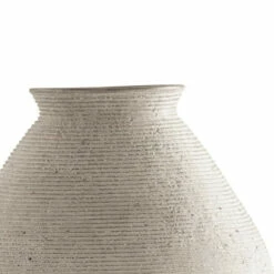 Wholesale 😉 Benzara Dale 12 Inch Round Polyresin Vase, Wavy Ribbed Spiral Texture Antique Beige 🔔
