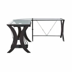 Best Pirce ๐งจ Benzara Metal L Shape Desk With Frosted Glass Top And Block Legs, White ๐คฉ