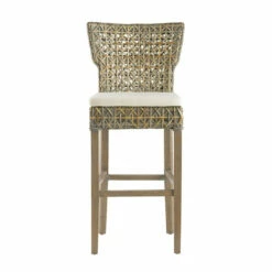 Hot Sale ๐ Benzara 30 Inch Bar Chair, Wood Frame, Armless, Rattan Woven Seat, Classic, Gray ๐