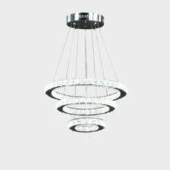 Top 10 ๐ Benzara 12- 47 Inch Ringed Adjustable Chandelier, 3 Circles Design, Chrome Silver โ