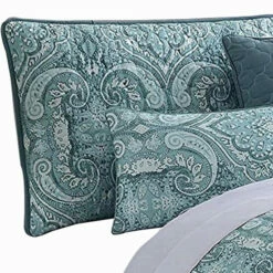 Wholesale 😉 Benzara Joe 6 Piece Queen Microfiber Quilt Set, Medallion Design, Reversible, Blue 🤩